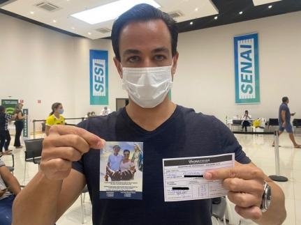 ”. A mensagem é do empresário Tiago Romariz Silvério, 41 anos, que tomou a vacina Pfizer na manhã desta segunda-feira (30), no Senai Porto.