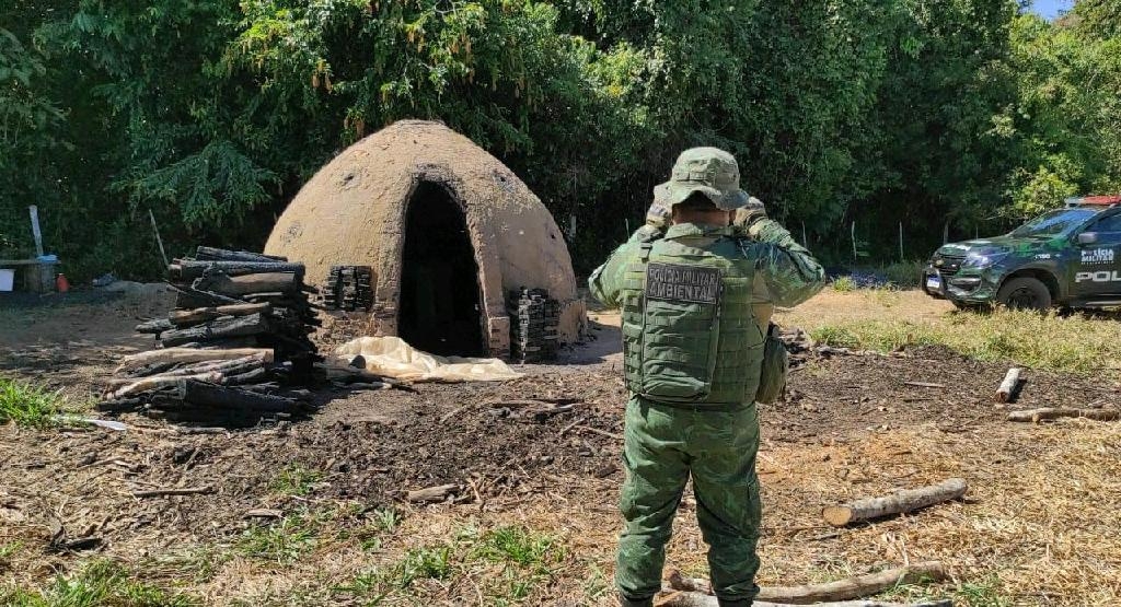 Batalhão Ambiental fecha carvoaria ilegal e apreende três toneladas de carvão em Arenápolis