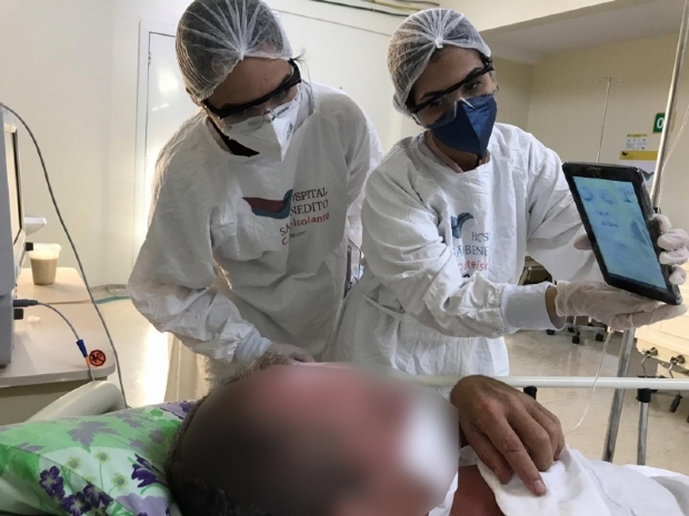 Internada com Covid-19 desde agosto, cuiabana tem contato com a família por ‘visitas virtuais’