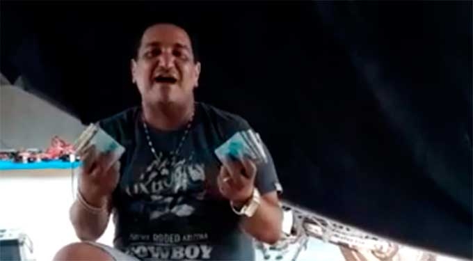 Em um vídeo gravado esta semana e divulgado inicialmente pelo site Biorosario, o parlamentar, ao som de uma música sertaneja, sentado num banco e com uma latinha de cerveja do lado, segura pacotes de dinheiro e comenta que "está meio quebrado hoje".