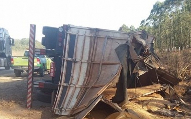 Carreta Carregada com Milho Tomba na BR-163, próximo a Nova Mutum