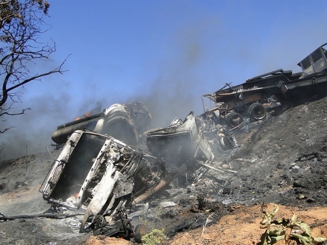 Carreta tanque explode depois de bater de frente com caminhão na BR 158
