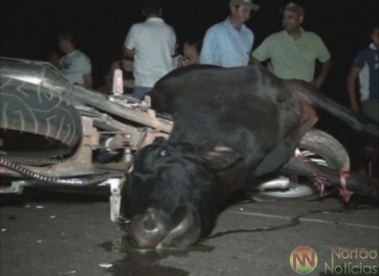 Motociclista bate em vaca e animal e condutor morrem na hora na MT130