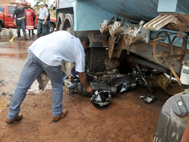 Francis Barbosa da Silva, de 19 anos, ficou debaixo de um caminhão, após a motocicleta Honda 125 Titan que pilotava colidir com o veículo na Rua Ubatuba, Bairro Jardim Noroeste, em Campo Grande.