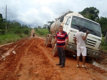 Algumas estradas vicinais no Setor Sul estão com pontos críticos e precisam de recuperação. A 4ª Sul é uma das que tem alguns atoleiros. Caminhões e veículos encontram dificuldades de tráfego.