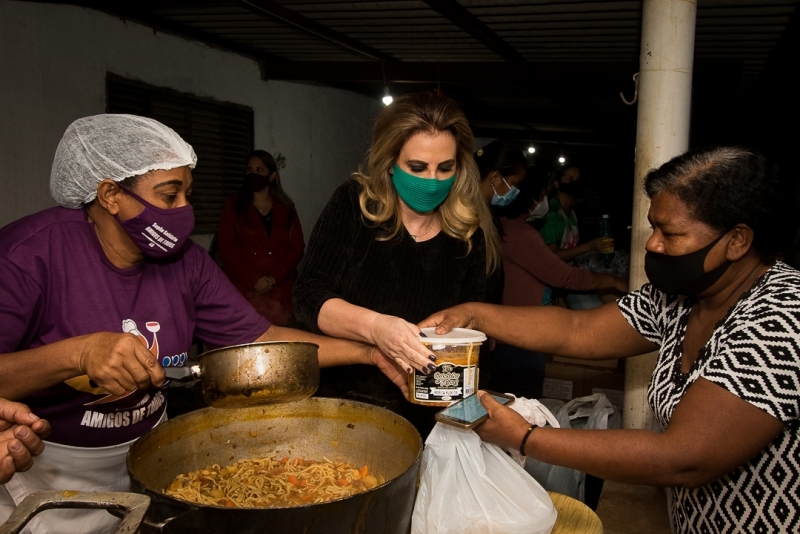 Primeira-dama participa de sopão, entrega alimentos e cobertores para 200 famílias
