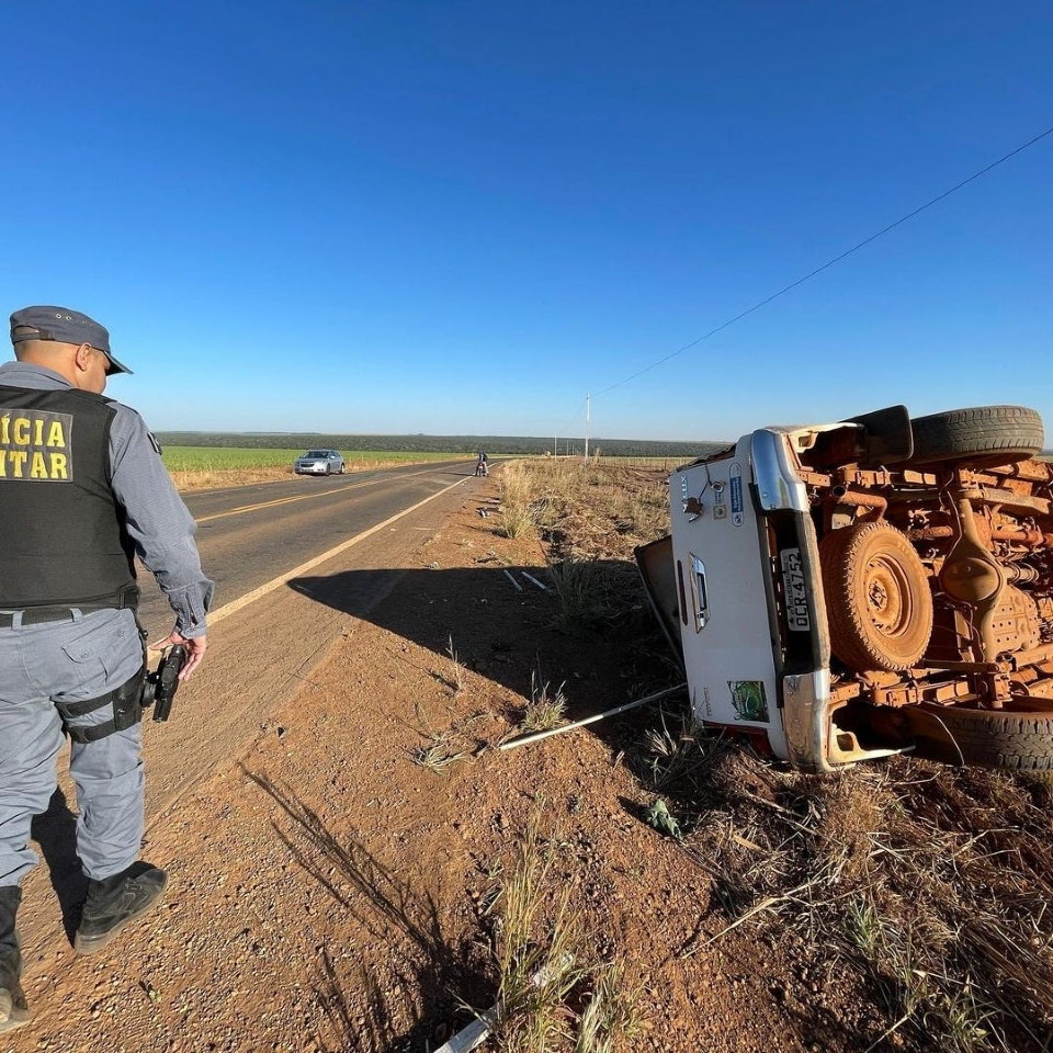 Caminhonete com servidores de prefeitura capota e ocupantes ficam feridos