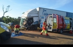 Motorista fica preso às ferragens em acidente entre dois caminhões na BR-163