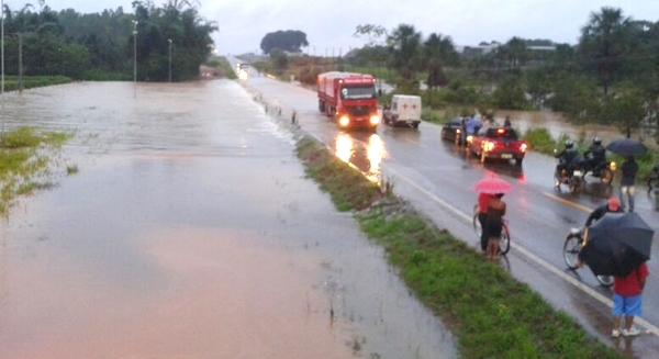 Córrego transborda e invade a BR-163 em Sinop; tráfego interrompido