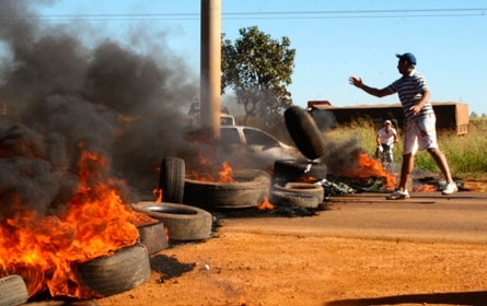 Depois de três acidentes em cinco dias e uma vítima fatal, moradores de Campo Verde bloquearam na manhã de hoje a BR-070, no cruzamento com a Avenida Vereador Clóvis César de Lima, na entrada dos bairros Cidade Alta e Jardim Campo Verde II, exigindo mais segurança no local. Liderados pela família do metalúrgico Alexandre Bonfate, que morreu na última quinta-feira (28) depois de ter se envolvido em um acidente no local há cerca de dez dias, os manifestantes colocaram fogo em uma barreira de pneus e impediram a passagem de veículos por mais de duas horas. Uma fila de aproximadamente dois quilômetros se formou nos dois lados da rodovia.