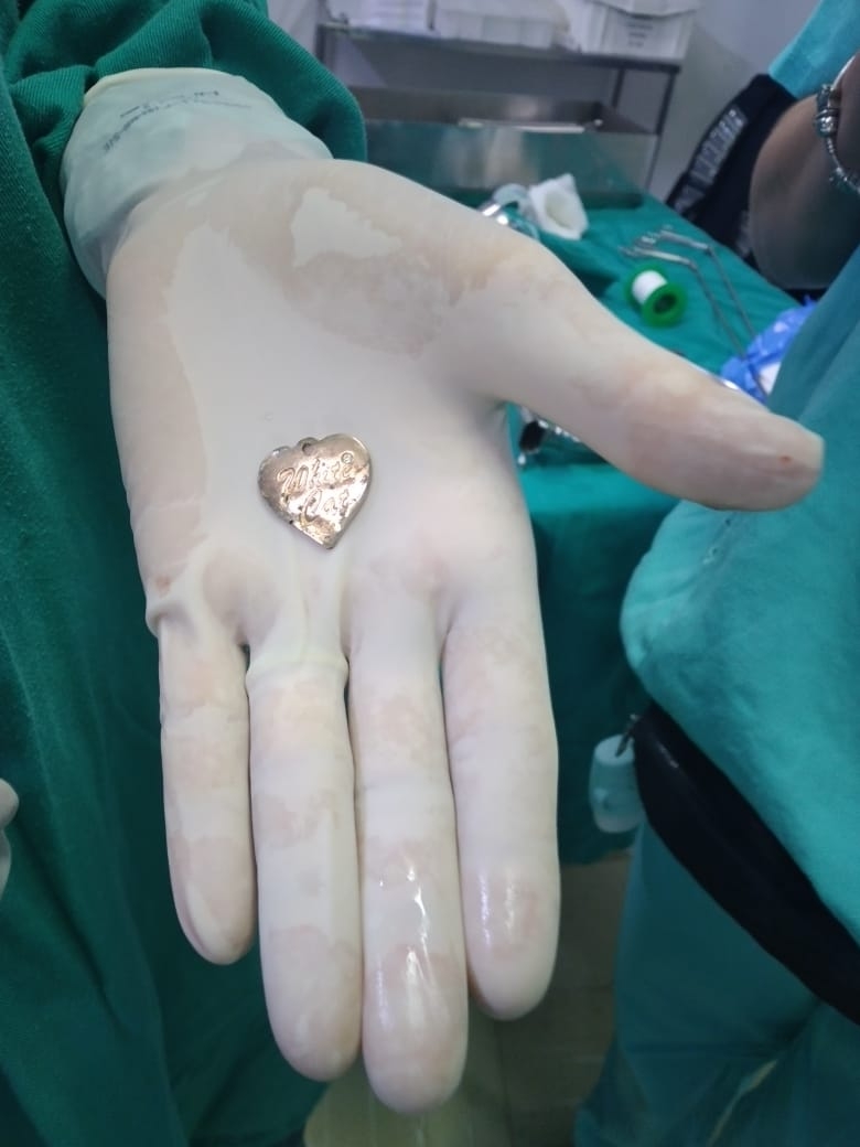 A manicure, Eronildes da Silva Neves, de 33 anos, que é mãe da criança, conta que comprou uma blusa com alguns adornos e dentre eles, havia esse pingente de coração. No entanto, sempre retira esses acessórios das roupas da menina, mas desta vez esqueceu.