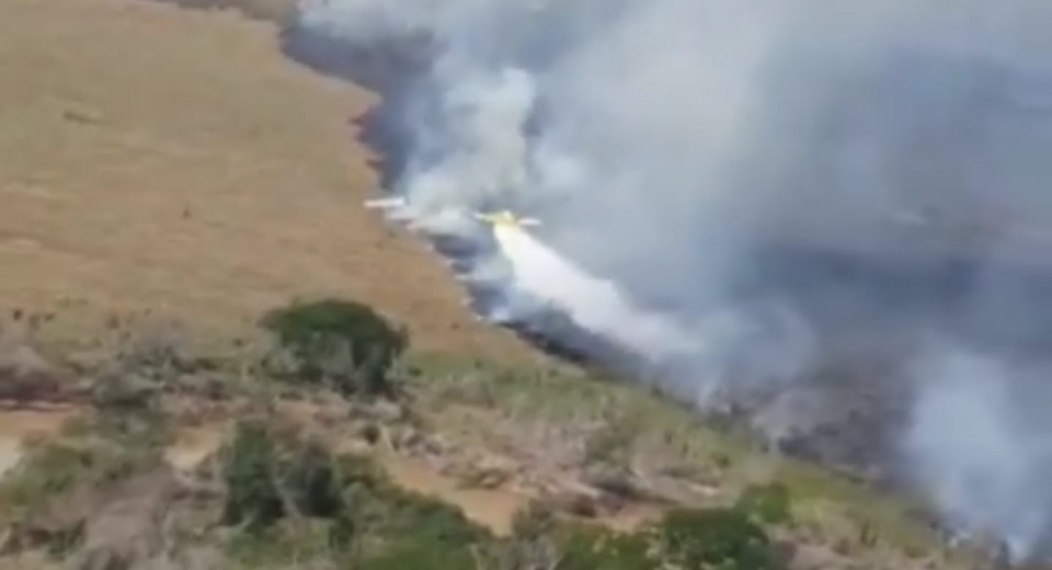 Na região, agentes do Corpo de Bombeiros tentam controlar as chamas. A primavera começa na tarde desta quarta-feira (22) no Brasil, e a previsão é de que a estação, conhecida pelas flores e pela renovação da vegetação, chegue com chuvas em Mato Grosso.