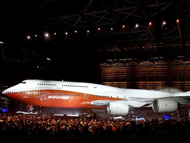 Boeing lançou no domingo um novo jumbo, esperando reviver o glamour do nascimento do modelo 747 de 40 anos atrás e usar isso para acelerar suas vendas.