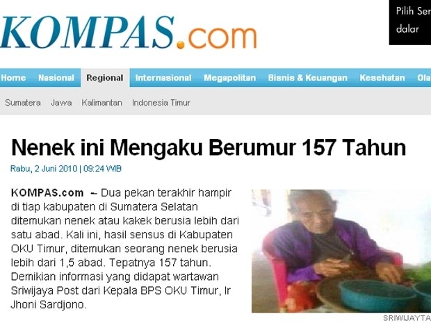 Uma mulher indonésia que teria 157 anos de idade foi descoberta pelo censo no país, informou nesta segunda-feira (7) o escritório de estatísticas da Indonésia.
