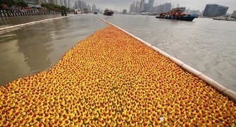 Onze mil patos de borracha invadem rio na China durante evento de caridade