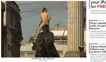 Um homem pelado escalou a estátua do Duque de Cambridge, nesta sexta-feira, parando o trânsito do centro de Londres, na Inglaterra. Policiais fecharam o tráfego em um raio de 100 metros da estátua. Diversos carros de polícia e ambulâncias se reuniram no local enquanto o homem gritava e fazia gestos sentado na cabeça do monumento, que faz uma homenagem ao Príncipe George, morto em 1904. Hoje o título de Duque de Cambridge pertence ao Príncipe William