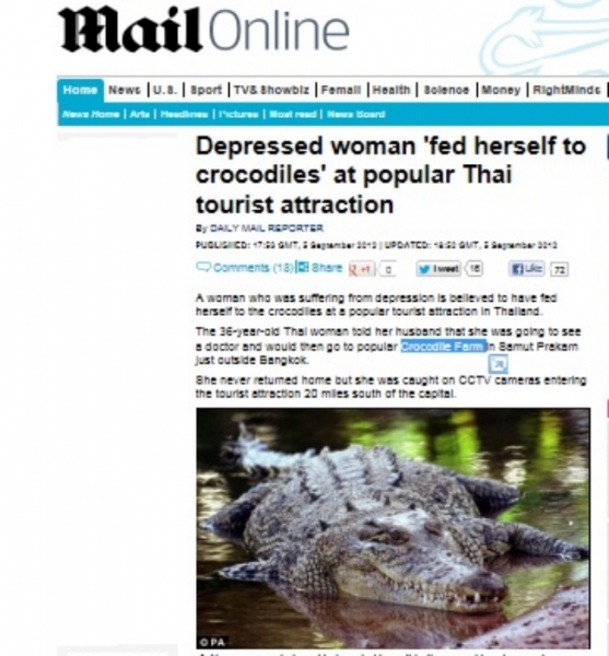 Mulher em depressão some após se atirar na jaula dos crocodilos em parque na Tailândia