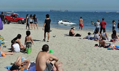 Um homem foi flagrado gritando "Esta é a minha praia!" e, depois, jogando o carro no mar em Long Beach (Califórnia, EUA). O motorista, que não foi identificado, foi levado para avaliação psicológica.