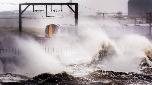 O furacão Kátia perdeu força e se tornou uma tempestade tropical, mas não deixou de provocar estragos. Nesta segunda-feira, as ondas eram tão fortes que atingiam um trem que passava pelo litoral da Escócia.