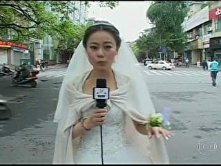 Repórter faz matéria vestida de noiva na TV após terremoto na China