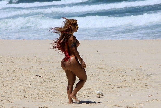 "Sósia" de Valesca Popozuda faz "farofa" em praia carioca; veja fotos