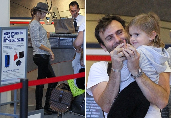 Alessandra Ambrosio exibiu, nesta sexta-feira (3), a barriguinha de cinco meses de gravidez no aeroporto internacional de Los Angeles, nos Estados Unidos, na companhia da filha Anja e o marido, Jaime Manzur. Esta foi a primeira aparição da família inteira após o anúncio da gravidez da modelo. Em janeiro, quando a família estava de férias no Brasil, a top apareceu ao lado da filha e do marido, mas em momentos diferentes.