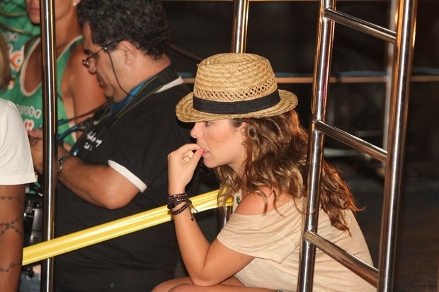 Marcação cerrada: Fernanda Souza assiste a show do Exalta no trio