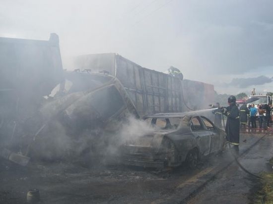 Cidades/Geral Colisão entre 5 veículos causa incêndio na BR 163
