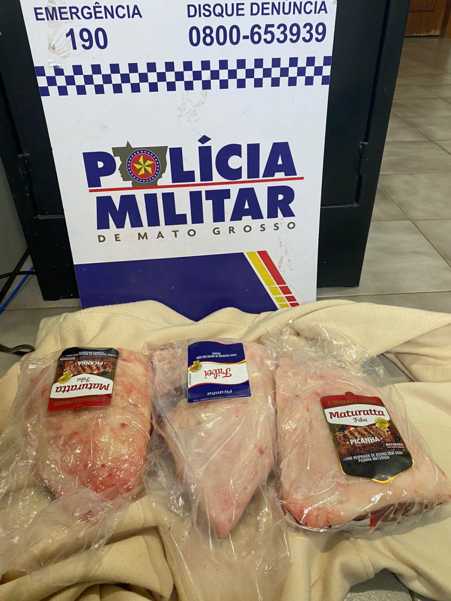 A Polícia Militar prendeu em Novo Diamantino um homem suspeito de furtar 03 peças de picanha na JBS, em Diamantino, de acordo com informações o homem é funcionário da empresa