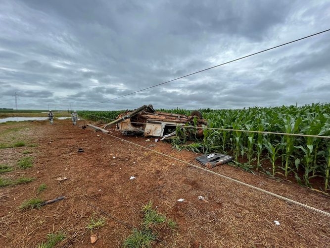 Cidades/Geral CAMPO NOVO DOS PARECIS: Homem fica ferido após capotar caminhonete na BR-364 e destruir poste de energia elétrica