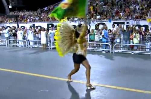 A apresentadora se inspirou em Luma de Oliveira. Em 1998, a musa deixou a Sapucaí em polvorosa ao aparecer com um artefato parecido no qual se lia “Eike”, seu marido à época.