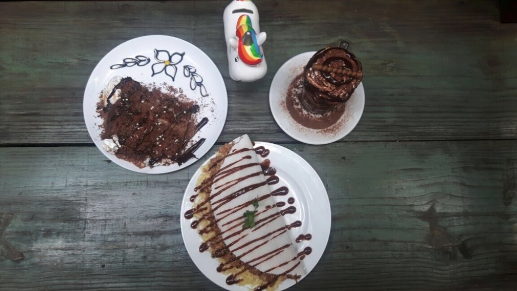 Comer uma tapioca de 1 kg recheada com costelinha, mussarela e molho barbecue, além de um milkshake e uma fatia de bolo de 35 centímetros de altura.