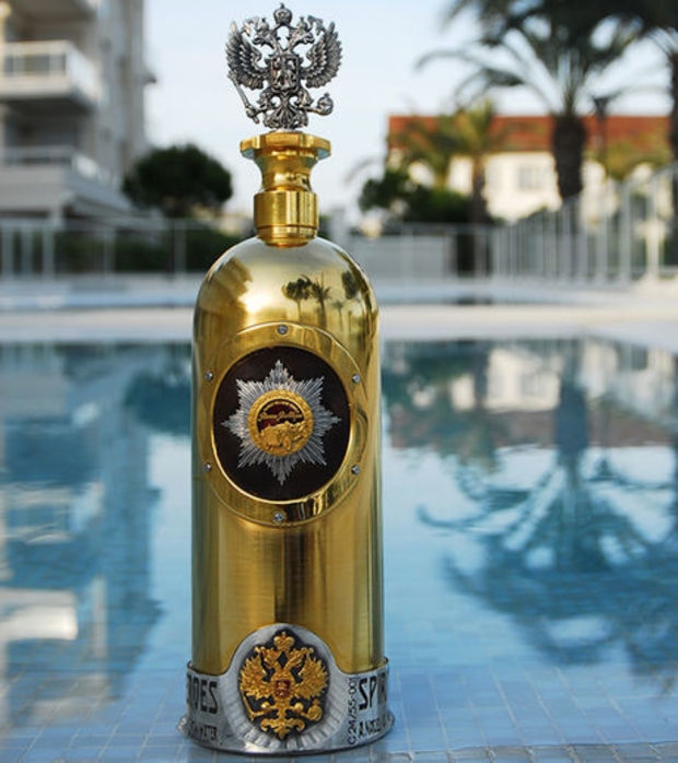 A garrafa de vodca, considerada a mais cara do mundo, que havia sido roubada de um bar em Copenhague no início da semana.