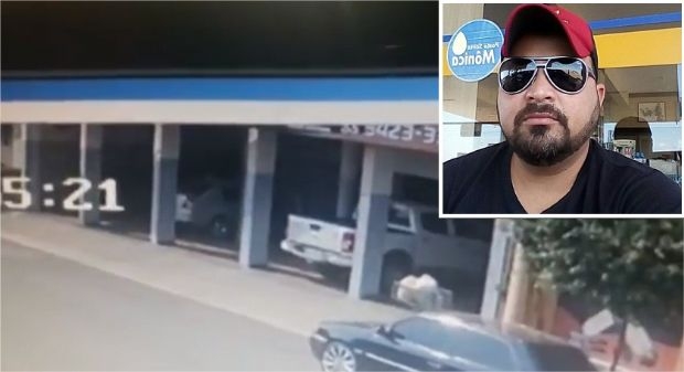 Uma câmera de segurança flagrou o exato momento em que Leandro Souza Silva, 33 anos, foi atingido pelo seu próprio carro (Renault Clio), enquanto aguardava pelo atendimento em uma mecânica no Centro de Rondonópolis (215 km de Cuiabá),