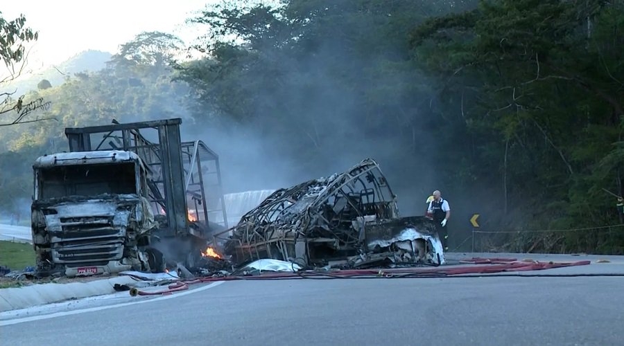 Nacional Caminhão invade contramão, bate em micro-ônibus e mata 11 dançarinos