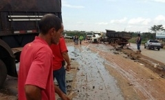 Cidades/Geral Caminhão e carreta batem de frente na BR-163 e deixa dois feridos